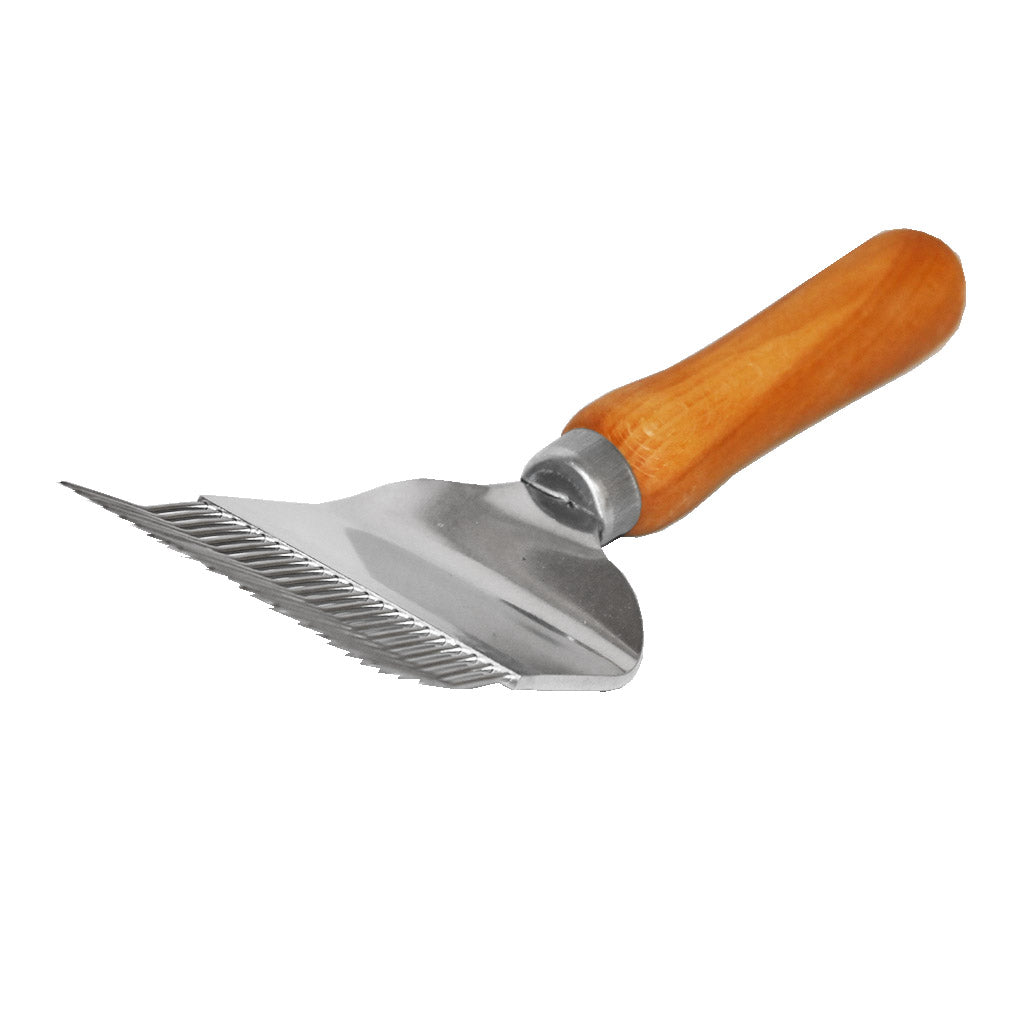 Ryðfrír skrælgaffall, sveigðar tennur.